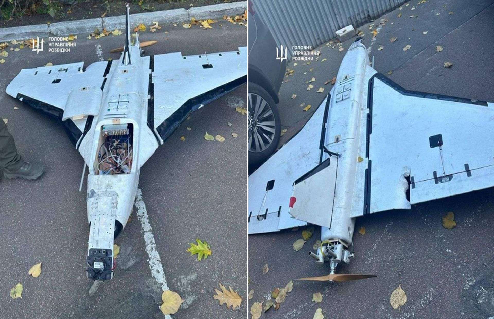 Gerbera long-range light drone with wood and foam airframe and a rear propeller, reaching up to 600 km at about 160 km/h, carrying a small warhead or camera to saturate defenses (Picture source: Defense Intelligence of Ukraine).