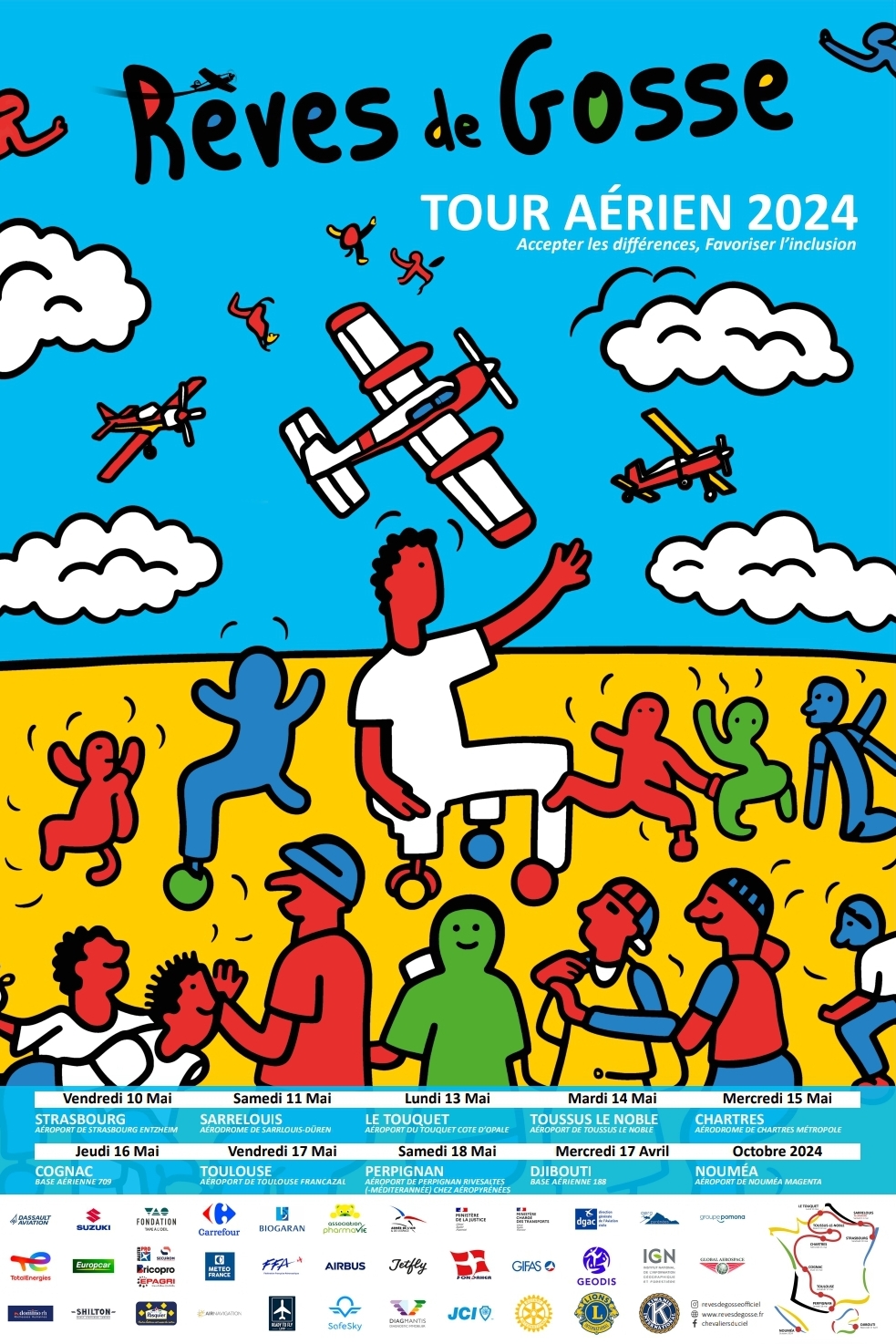 The Rêves de Gosse 2024 tour will set off from Strasbourg on May 10, 2024 and finish in Perpignan on May 18. An aerial tour de France, and all for a good cause: children!