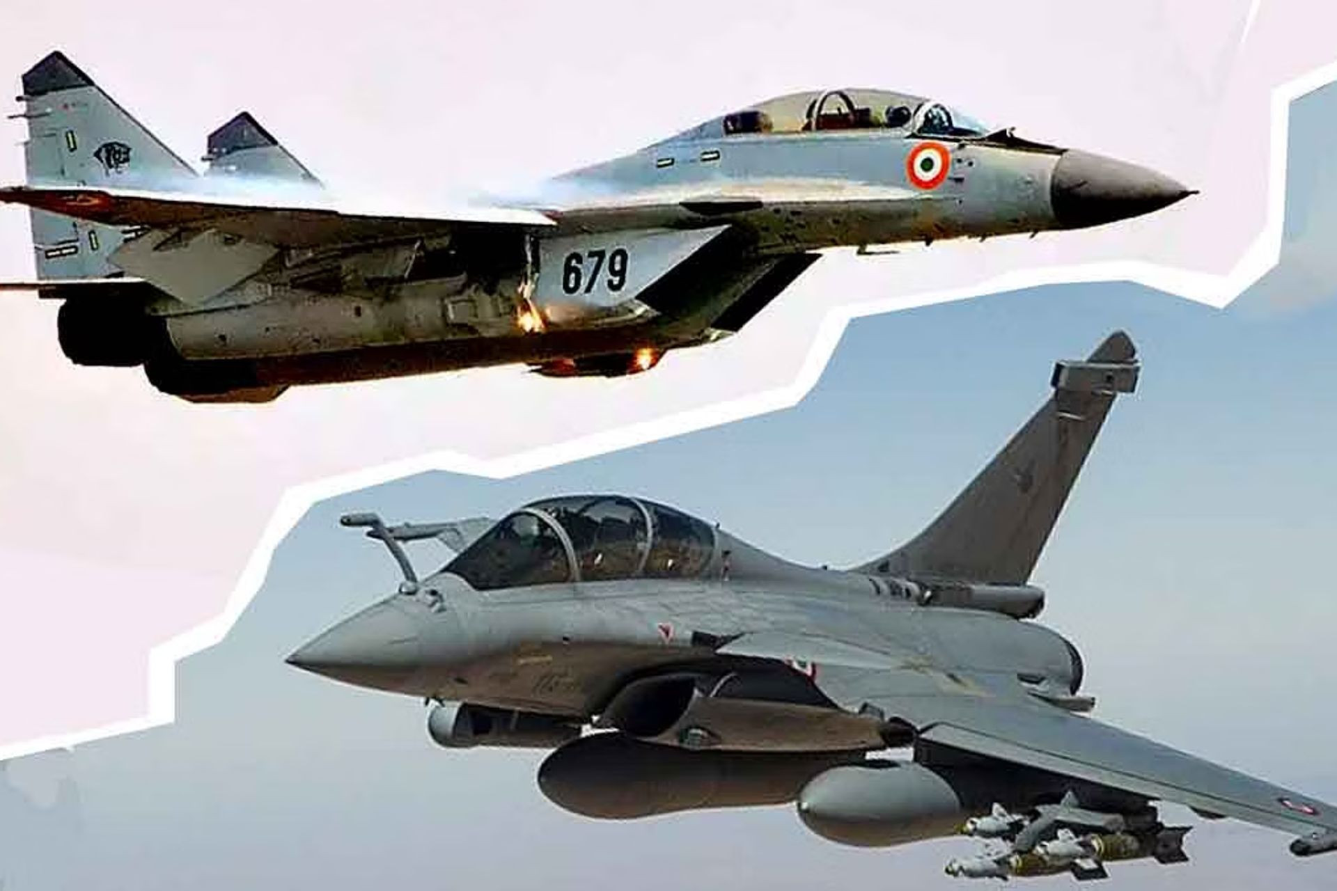 French RAfale fighter ( Bottom) to replace old soviet Mig-29 ( Top) (Picture source: Spotters pages on Facebook)