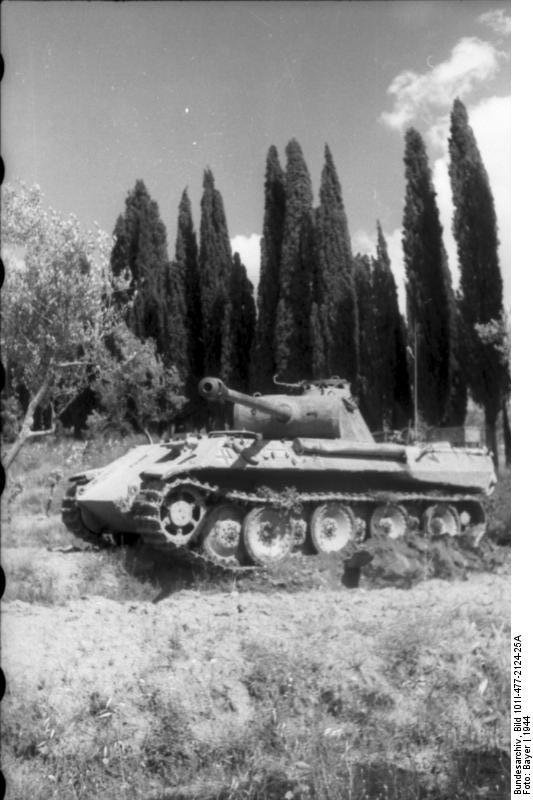 Il Panzer V Panther (abbreviazione di Panzerkampfwagen V Panther, numero di identificazione dell’esercito Sd.Kfz. 171) fu un carro armato medio tedesco prodotto durante la seconda guerra mondiale che prestò servizio dalla metà del 1943 fino alla fine del conflitto in Europa nel 1945. Fu progettato per fronteggiare il T-34 sovietico e per rimpiazzare i Panzer IV e Panzer III. Risolti i problemi iniziali di messa a punto, la sua eccellente combinazione di potenza di fuoco e protezione lo fa considerare dagli storici come uno dei migliori carri armati tedeschi della guerra.
