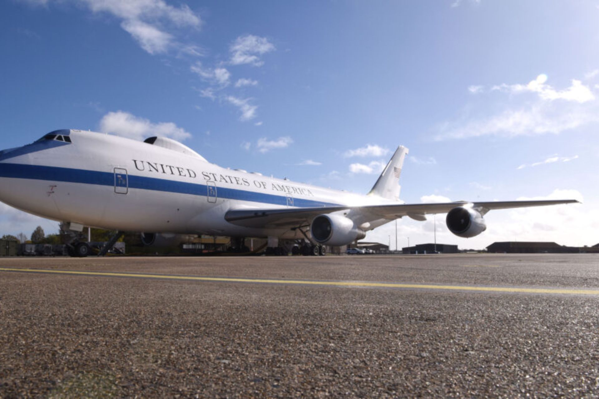 An E-4B National Airborne Operations Center (NAOC) platform at RAF Mildenhall, England, on 12 April 2023. The new Global Strike wing at Offutt AFB will provide a unified command path to assure the readiness of the 595th Command and Control Group’s NAOC and Nuclear Command, Control, and Communications missions. (Picture source: USAF)