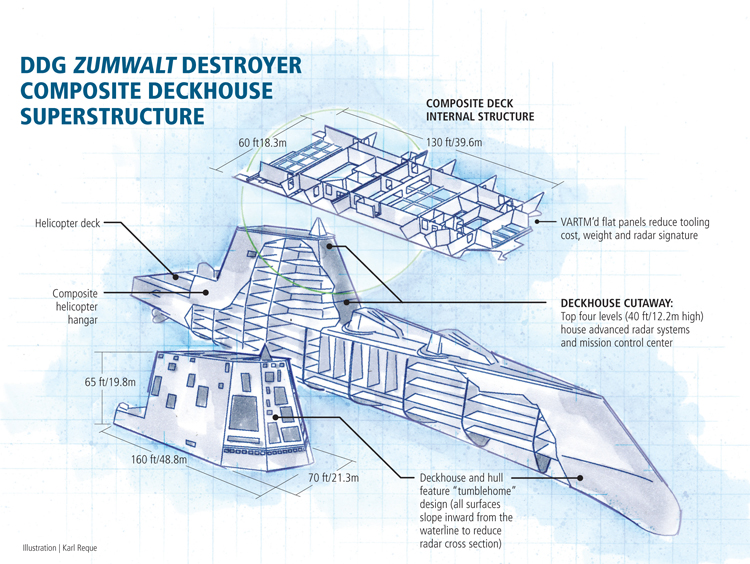 Una linea di condotta logica potrebbe essere quella di installare i tubi nello spazio attualmente occupato da uno o entrambi i due sistemi avanzati AGS da 155 mm su ciascun DDG-1000. Gli AGS si caricano automaticamente e sono collegati a caricatori di grandi dimensioni che si estendono ben al di sotto della linea del ponte, il che non sarebbe più necessario se queste armi venissero rimosse.