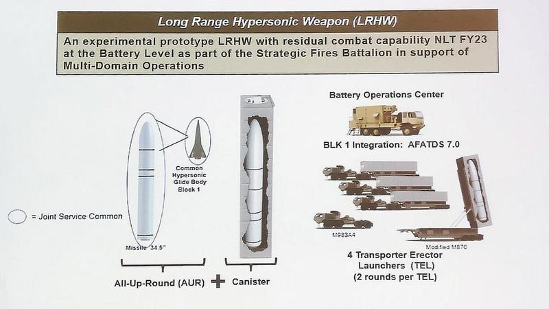L’arma ipersonica a lungo raggio (LRHW) è un prototipo di un sistema di lancio integrato operativo per unità dell’US ARMY, in grado di volare a Mach 5 +, capace di fornire una risposta tempestiva a un possibile scenario di minaccia ostile.
